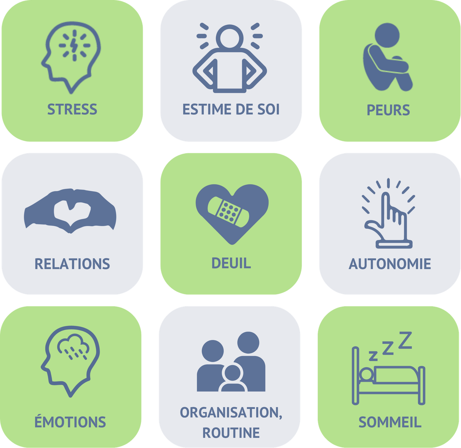 deuil, gestion anxiété, trouble d'opposition, communication non-violente.